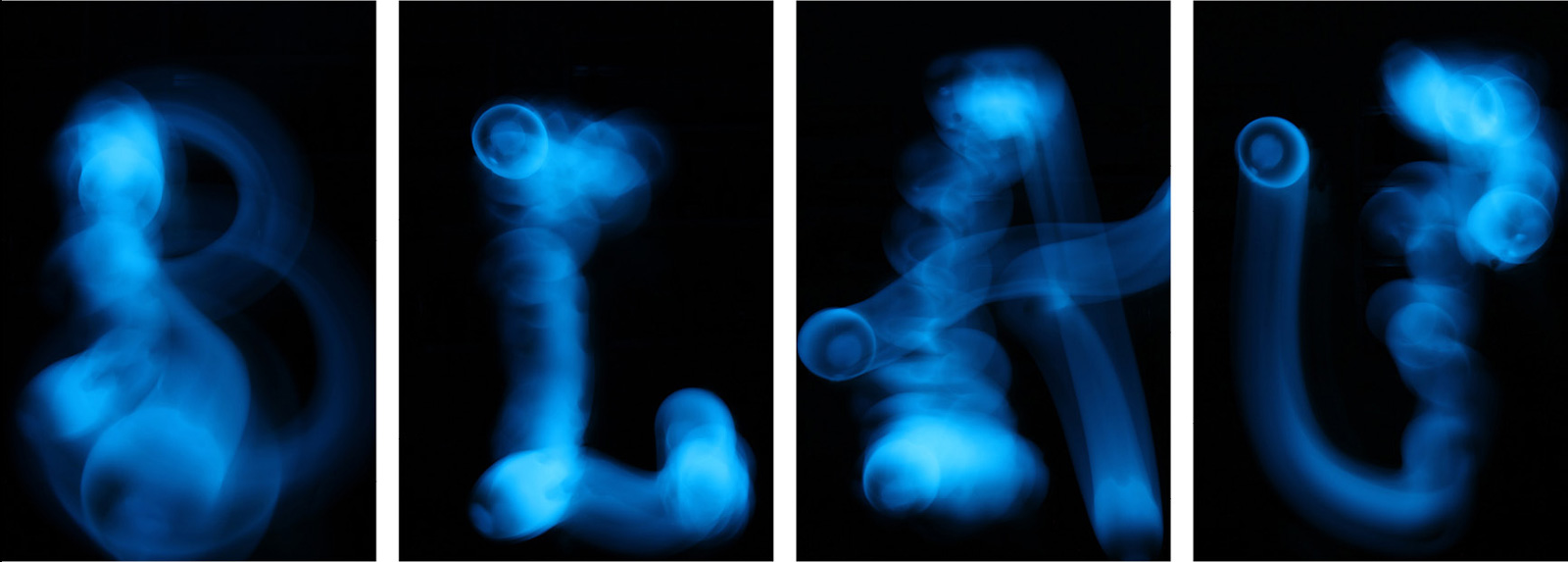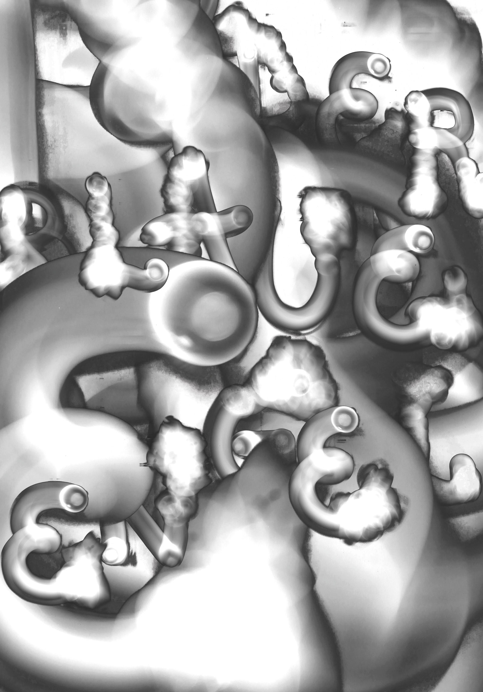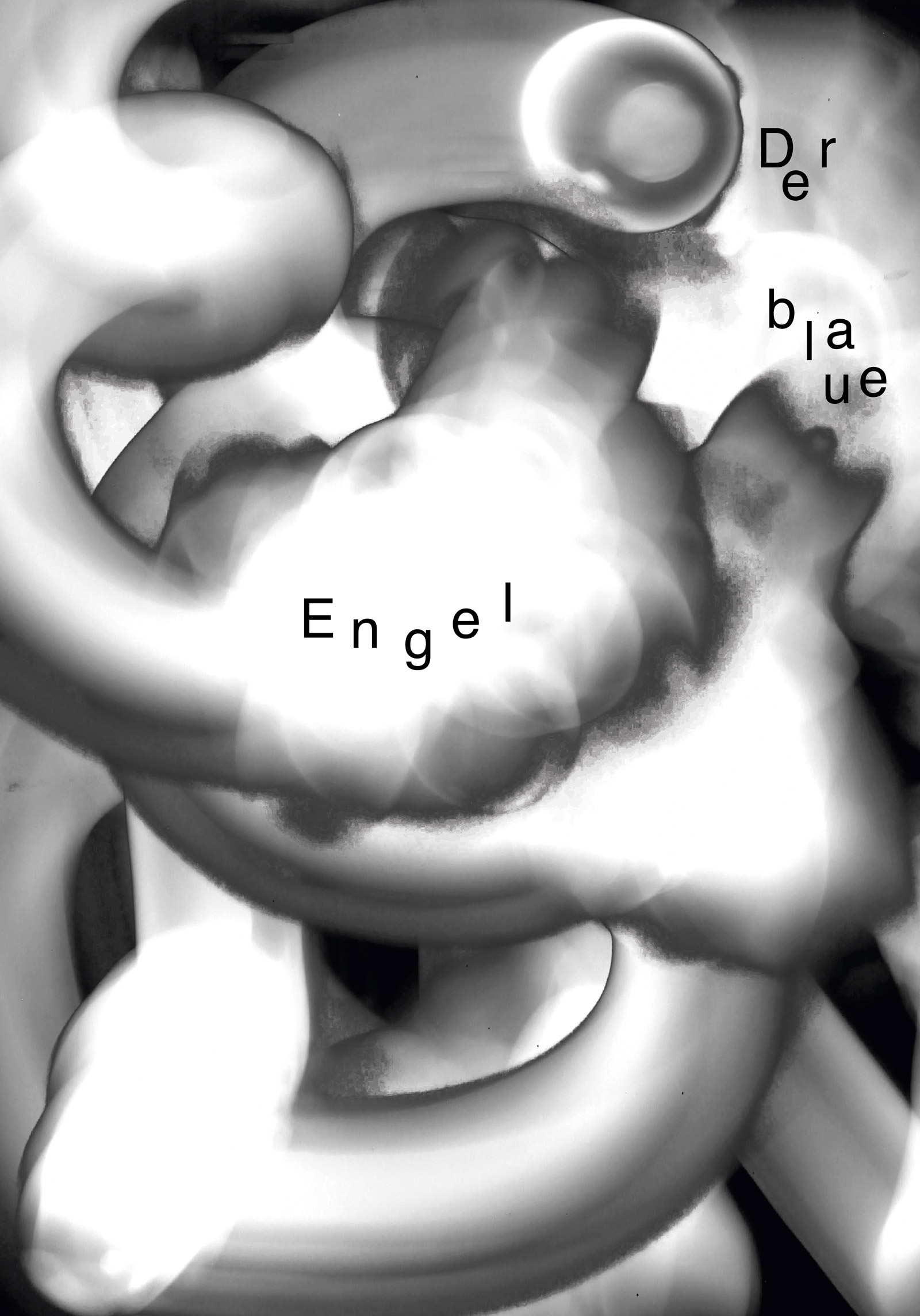 Durch die Kombination von freigestellten Buchstaben und der Überlagerung und der Reduktion auf schwarz-weiss resultieren sehr spezielle, eindrückliche, unheimliche und misteriöse Gebilde - genau so misteriös, wie es eben ein Engel für mich ist.
